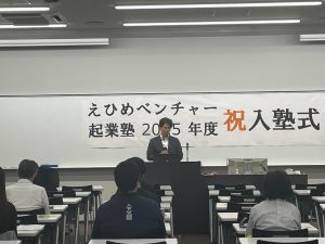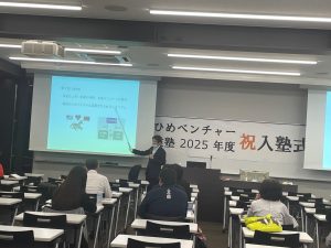 愛媛県、松山大学、えひめ産業振興財団の共催による「えひめベンチャー起業塾」第1回が、2025年10月3日(木)18時30分~21時00分に松山大学で開催されました。